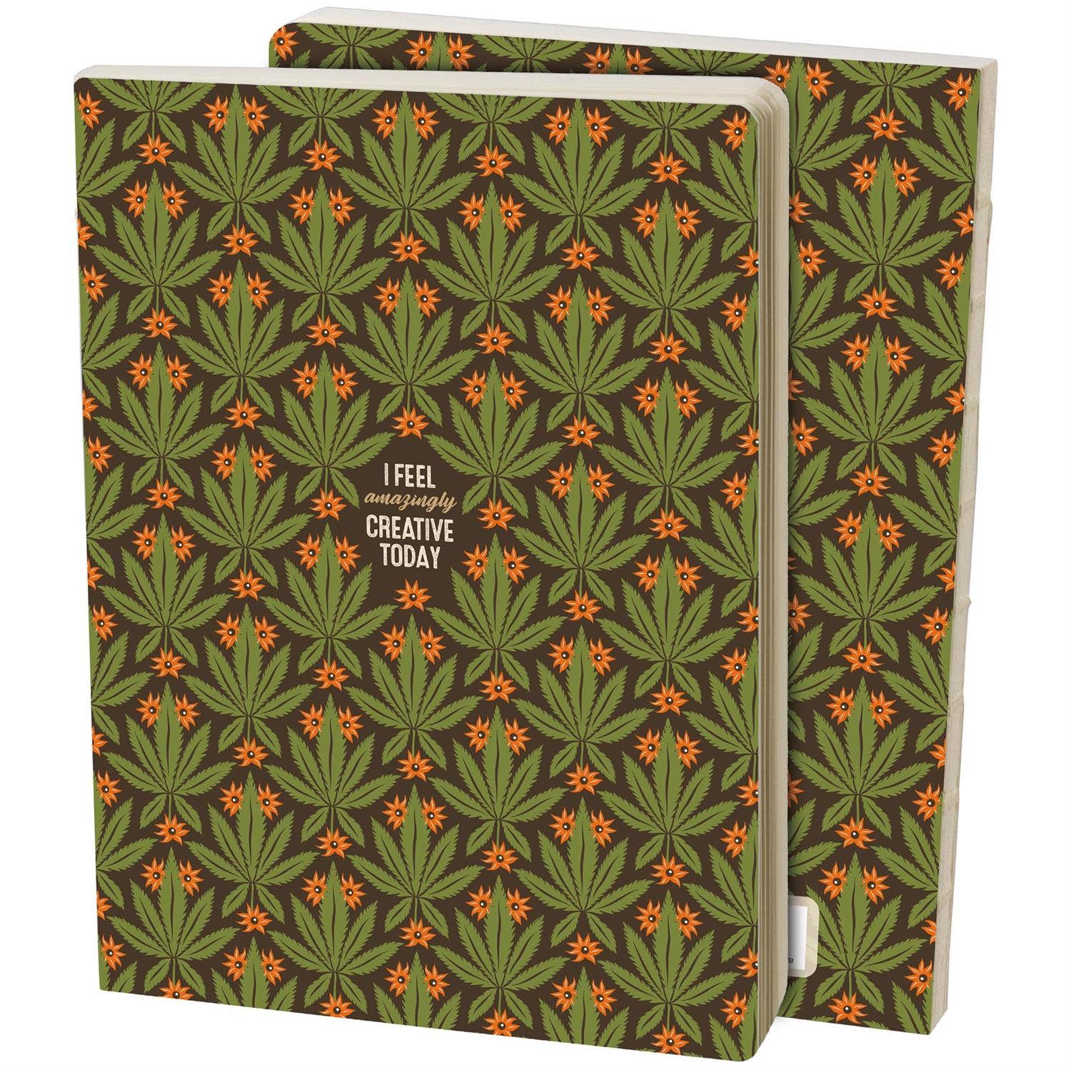 This chill journal displays "I Feel Amazingly Creative Today" with a relaxing pot leaf pattern in an earthy color palette perfect for writing those sudden thoughts of genius before they disappear. Questionables journals include 160 lined pages and an open spine to lay flat for easy use when writing. Our Amazingly Creative journal is designed to maximize chill at home or for gifting to pass that feeling to someone who needs it.