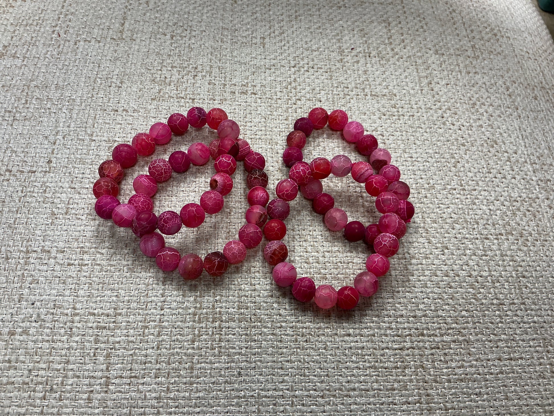 Slip on this charming pink glass beaded bracelet and let your wrist do the talking! Each bead features delicate striation lines that catch the light beautifully, adding depth and visual interest to your everyday look. The stretchy design means effortless on-and-off wear—no clasps or fussing required. Perfect as a standalone statement piece or layered with other bracelets for a fun, personalized stack. A playful accessory that brings a pop of color to any outfit.